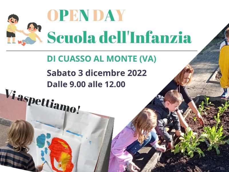 L'Istituto Comprensivo "Don Milani" è lieta di invitare quanti interessati all'Open Day della scuola dell'Infanzia che si terrà sabato 03 dicembre 2022 presso il plesso della Scuola dell'Infanzia di Cuasso al Monte dalle ore 9.00 alle ore 12.00.